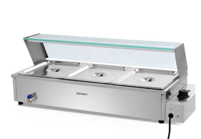 Single food pan: 26cm x 32cm x 9.5cmOverall dimensions: 91cm x 39cm x 33.5cmCable length: 118cm approx.